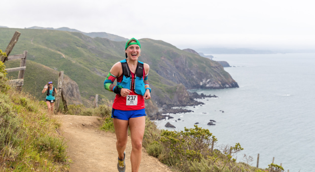 Char running the Miwok 100K Trail Race last May.