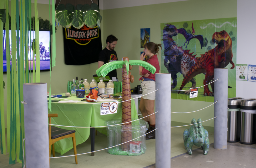 My team dressed up as dinosaurs last year for Halloween, so, that.