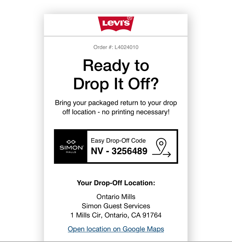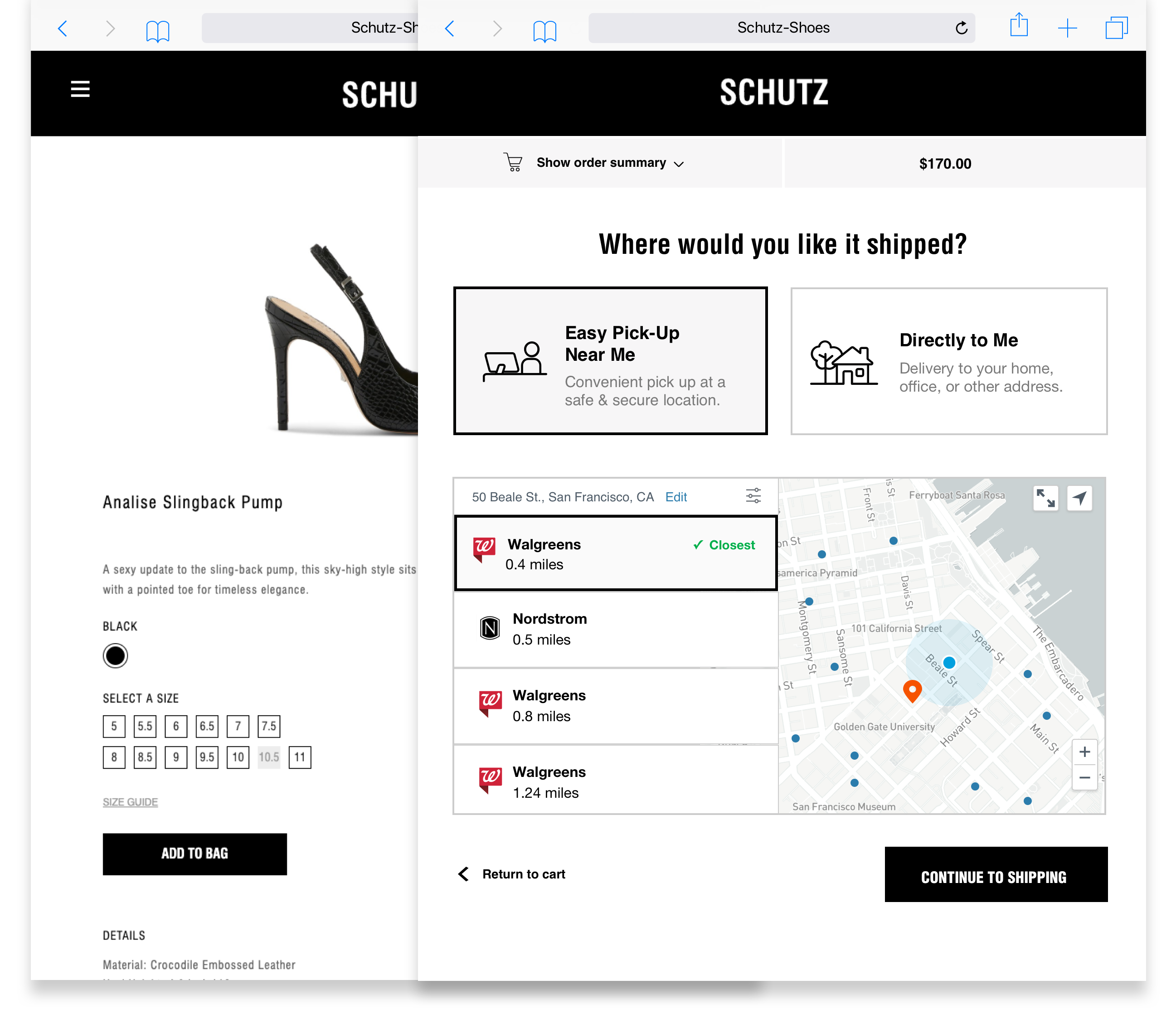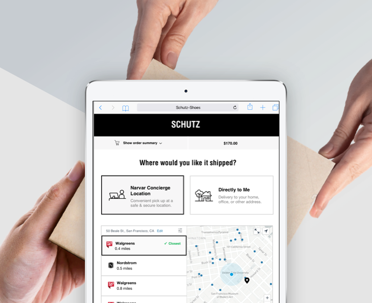 Consumers are prompted to choose delivery to a Narvar Concierge location while shopping online by selecting the order pick-up option during checkout. Consumers can also choose a Narvar Concierge location for returns by selecting the drop-off option in the Narvar return portal. This solution provides consumers with added convenience, flexibility and time savings with minimal changes to your platform.