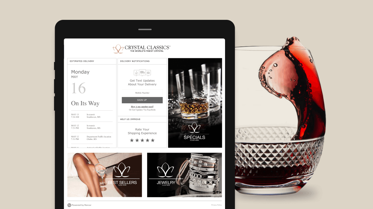 Prior to Narvar, Crystal Classics didn’t provide real-time order updates. Instead, they emailed their customers a tracking number which needed to be input manually on the carrier website.