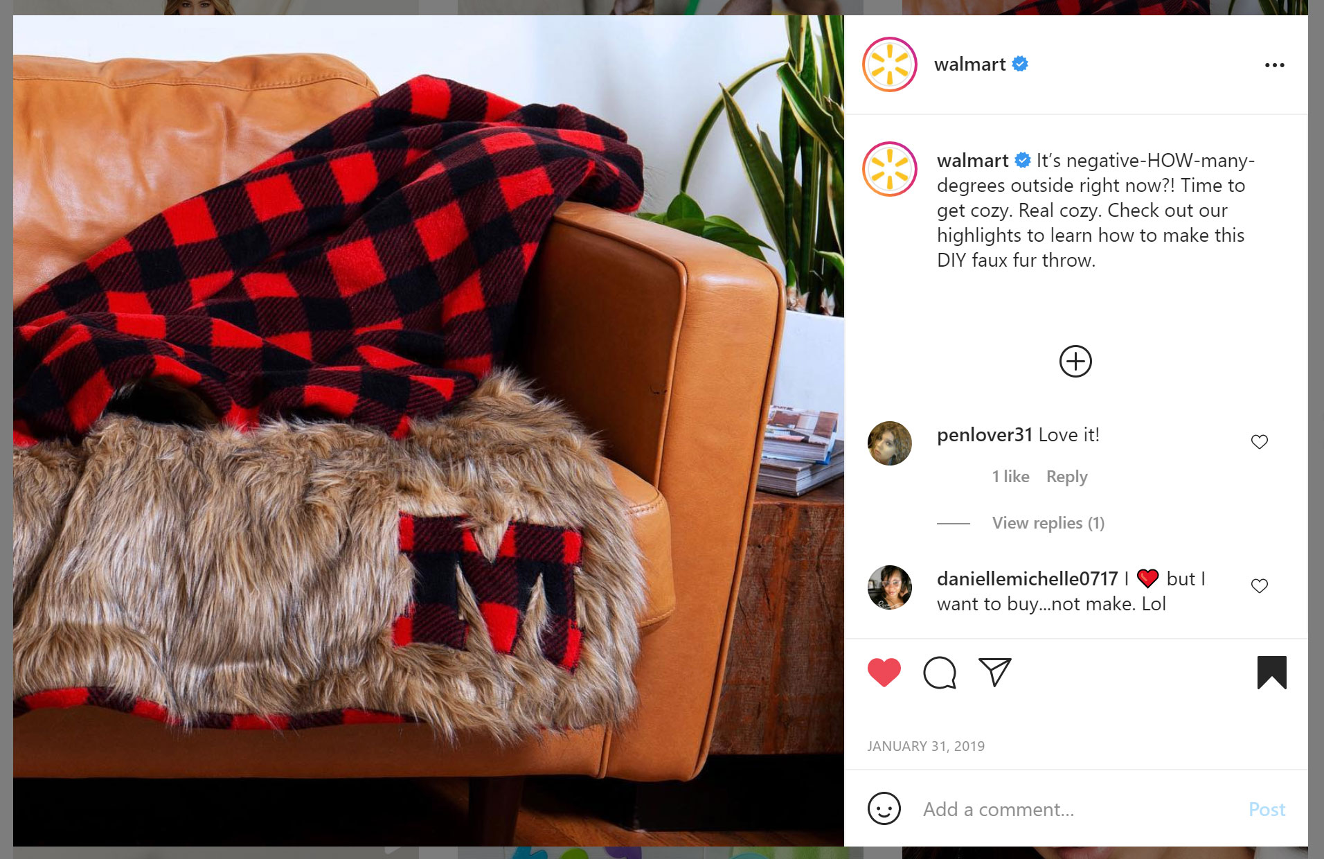 The comments were generally positive, and followers engaged by tagging friends and telling them “this is so you” and “you need this”. But amidst these positive comments were repeated mentions and tear-filled emojis (so dramatic!) from followers indicating that they, in no uncertain terms, didn’t sew and didn’t want to learn. They just wanted to buy that throw. From that feedback, I was able to look into developing an easier no-sew tutorial and I could pass along the idea of monogrammed throws to the housewares merchandising team.