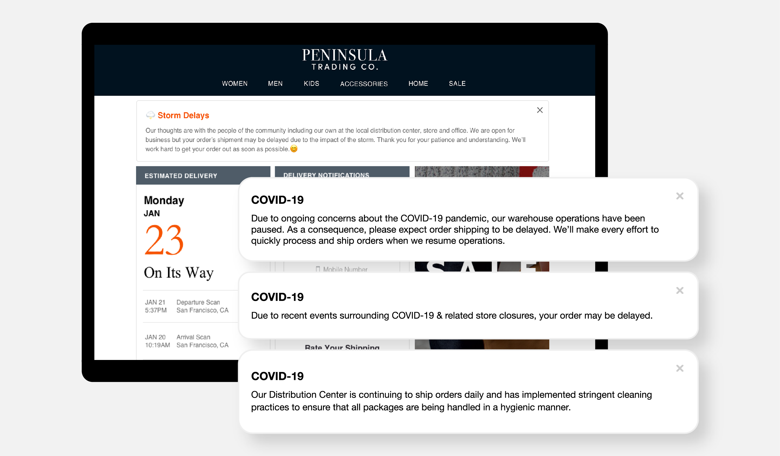 These are unprecedented times for everyone. And while reports of the challenges that brick and mortar retailers have faced over the last few years have been widespread, very few were prepared for mass closures of physical locations. In a time when uncertainty is at an all time high, ecommerce retailers can benefit from being customer-centric and clearly setting expectations in all stages of the purchase and post-purchase journey to provide some reassurance to customers whose entire lives have been upended.