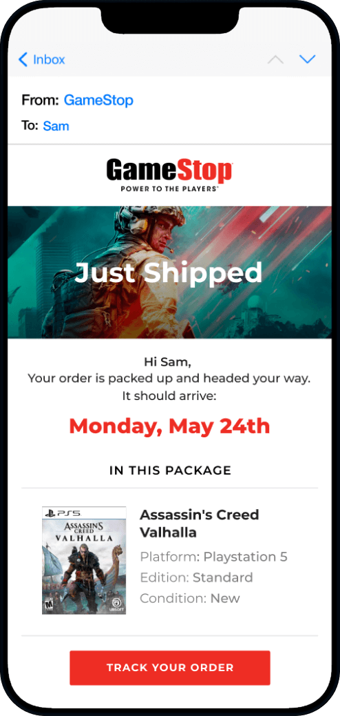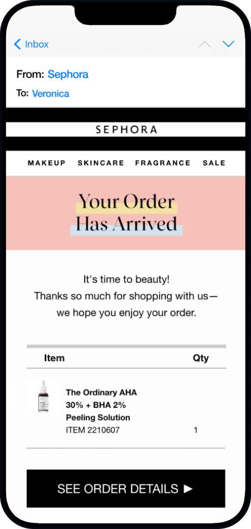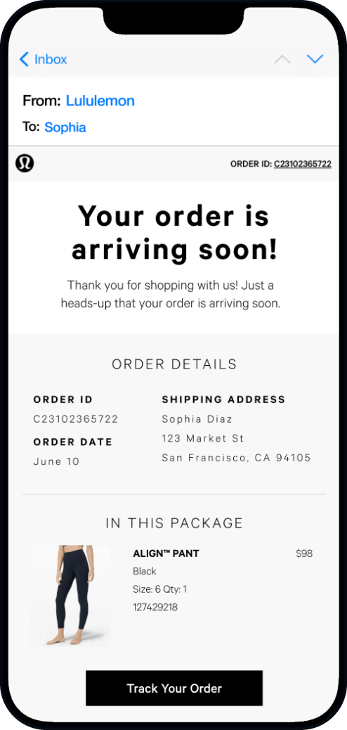 Senden Sie Updates zu Transaktionen, Bestellungen, Lieferungen oder Kundenkonten mit über 40 vorgefertigten Nachrichten oder definieren Sie Ihre eigenen einzigartigen Touchpoints.