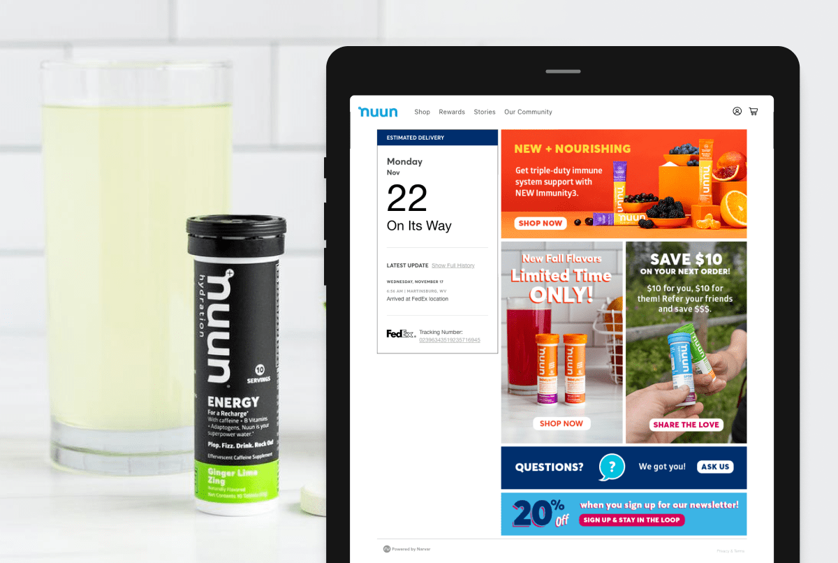 Ein Schritt, den das Unternehmen zur Erreichung dieses Ziels unternommen hat, war die Einführung der Track-and-Return-Produkte von Narvar im März 2021. Nuun nutzt Shopify als E-Commerce-Plattform, die, wie Emily sagt, „eine großartige Plattform ist, aber den Hauptteil ihrer Funktionalität der Integration von Produkten wie Narvar zu verdanken hat.“