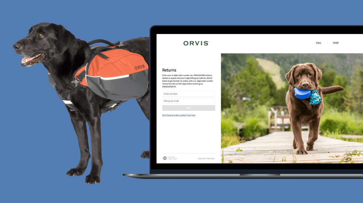 “Originally, if you wanted to set up a [return] with Orvis, you had to call us so our agent could set up the return authorization program, which was a pain for customers who wanted self service—customers purchasing online should be able to return or exchange online too,” said Amy Williamson, Voice of the Customer Supervisor at Orvis.