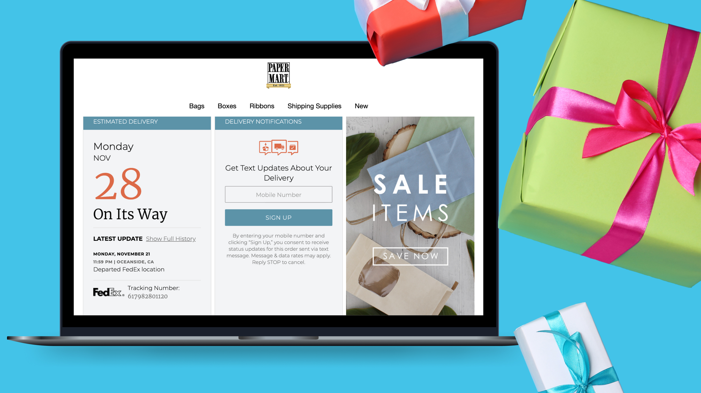 In business for more than a century, Paper Mart is a family-owned and operated company committed to providing its customers (primarily small to medium size businesses) with everyday low prices on all means of product packaging and mailing supplies. Whether it’s ribbon, gift wrapping, or pallets of corrugated cardboard, the team at Paper Mart prides itself on stocking every width, size, and color of both industrial and retail packaging. A valued partner since 2021, Paper Mart uses a number of Narvar’s signature products including Track, Notify, and Monitor to give their B2B customers the ultimate post-purchase experience.