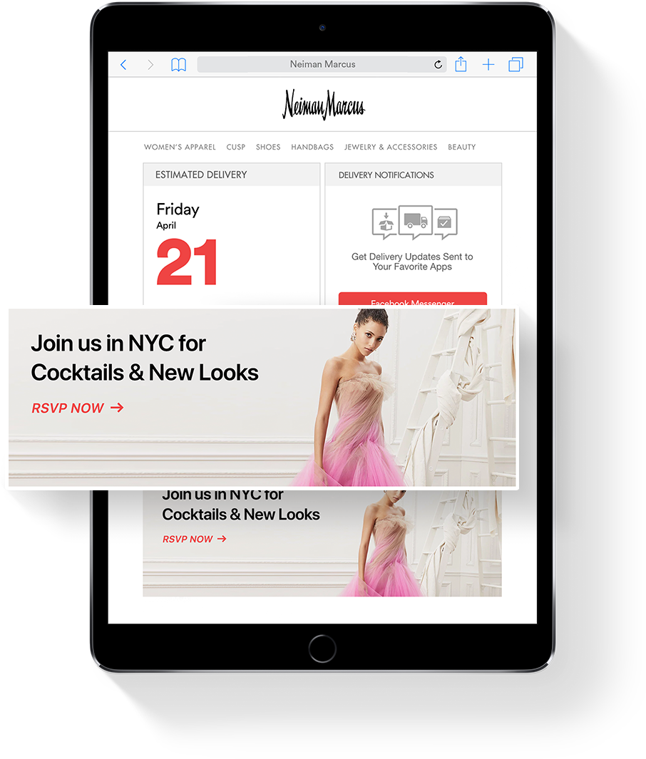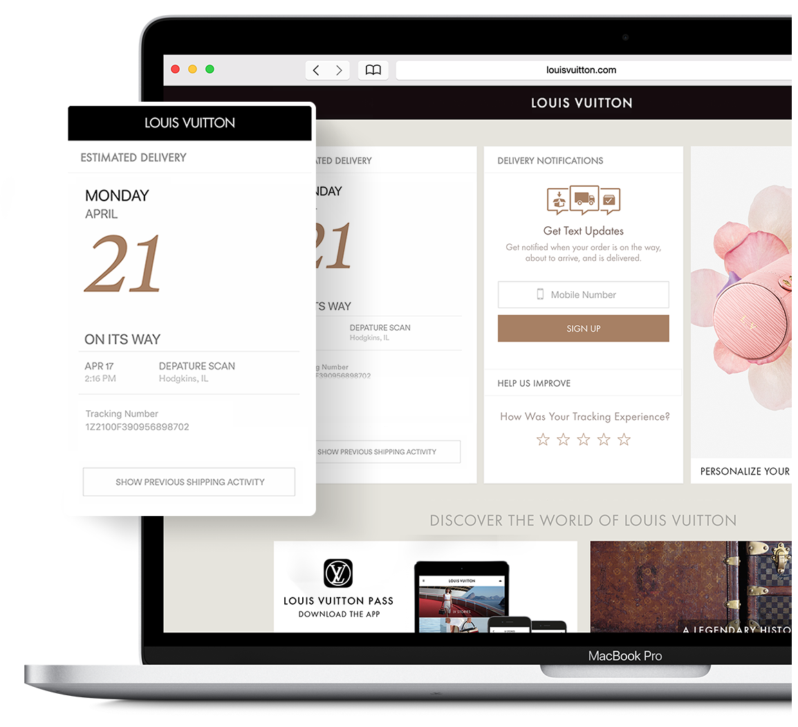 75 % des clients de luxe possèdent différents appareils et exigent une expérience numérique sans faille. Répondez à leurs exigences par des alertes multicanales aux couleurs de la marque qui transmettent des informations actualisées immédiates sur leurs envois et livraisons.