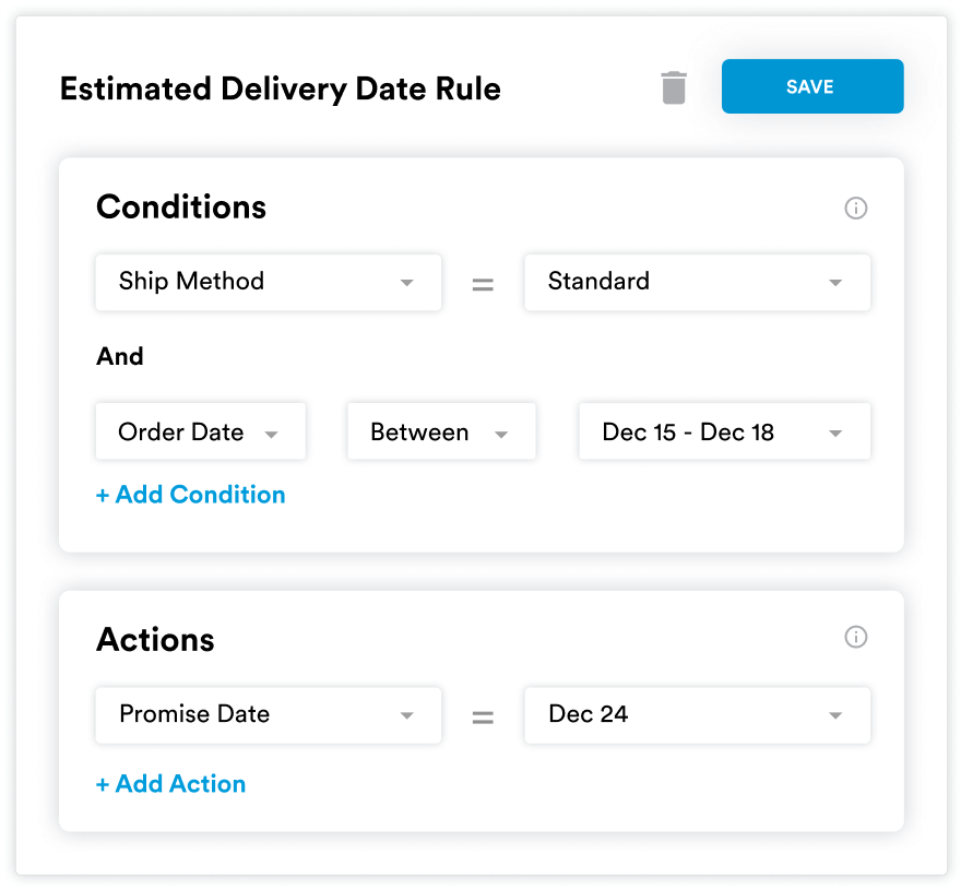 お客様の事業に固有の考慮事項がある場合も柔軟にルールを設定でき、発送方法が複数に分かれている場合であっても正確な配達日を予測します。