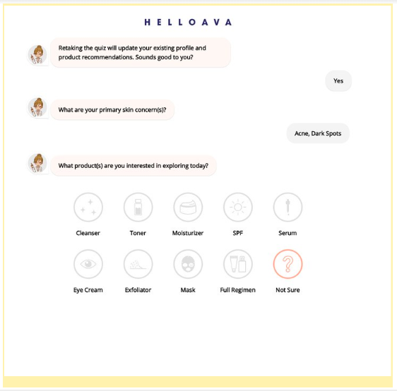 HelloAva's chatbot quiz leads customers to customized beauty recommendations.[/caption]