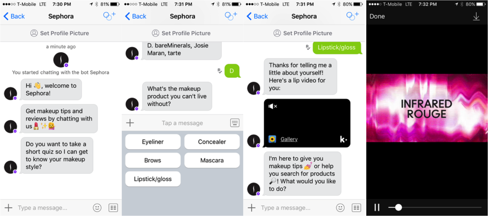 Sephora's Kik extensive chatbot in action includes make-up tutorials and more.[/caption]