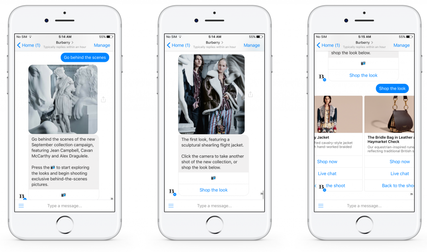 Originally launched for London Fashion Week in 2016, Burberry’s Facebook Messenger gives Burberry’s luxury shoppers a personalized way to connect with their brand. Customers can specify the types of products they're interested in—scarves, for example —and the bot will serve up suggestions of products from the current collection. Users can also watch recent runway shows and browse other content from the digitally forward brand within Messenger. Burberry also goes a step further by using its bot to send push notifications, inviting fans to explore gifts and pre-order hot new items.[caption id="attachment_3242" align="aligncenter" width="872"]