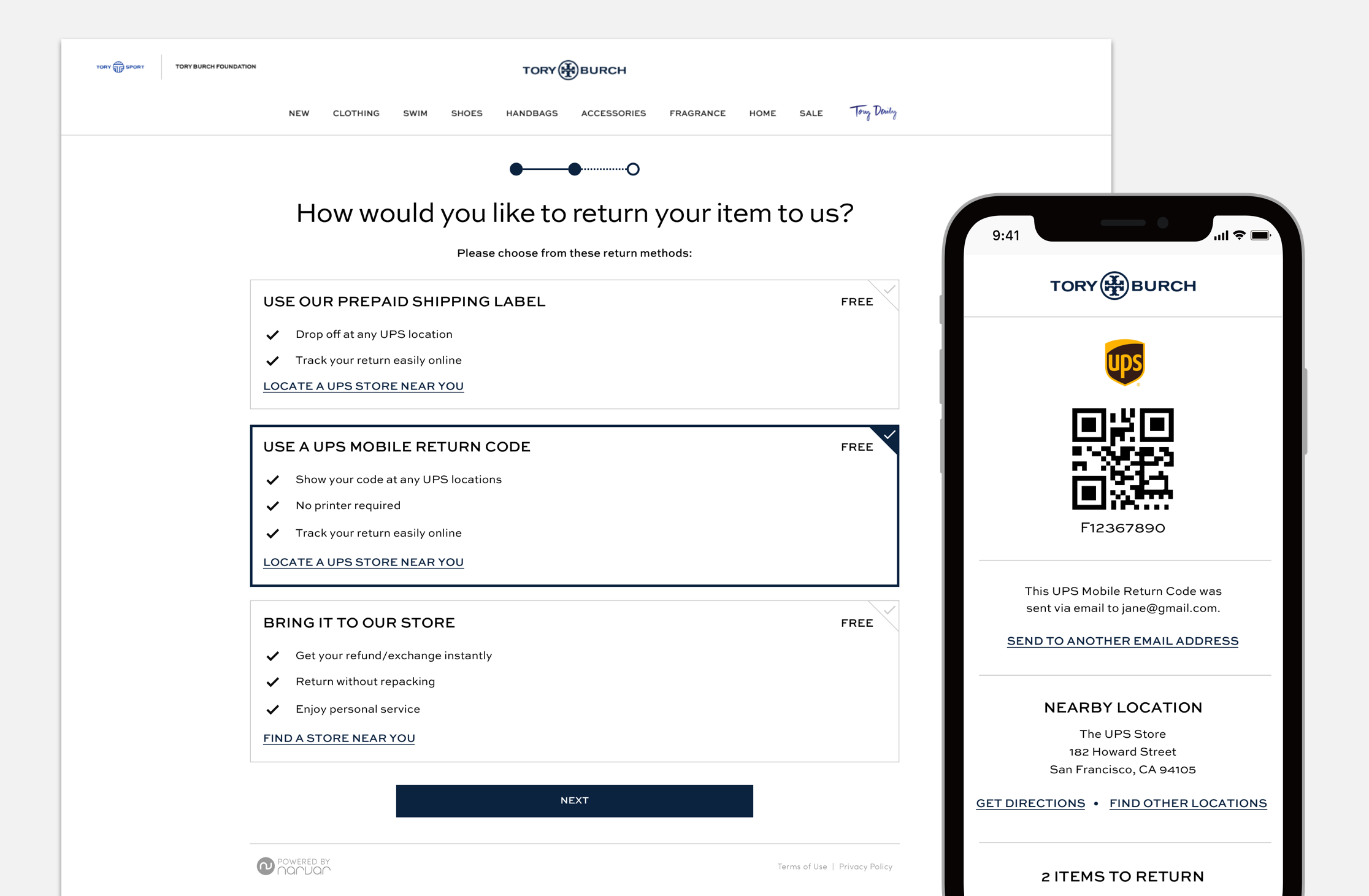 Tory Burch is ahead of the rest, being the first retailer to deploy printerless returns with Narvar, giving consumers more control over how they send items back while also eliminating the need for pre-printed labels and thereby reducing the retailer’s return costs.