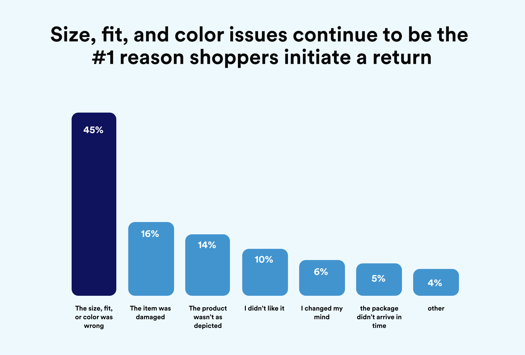 According to Narvar’s 2022 State of Returns Report, the most common reason for returns is fit—a reason generally accounted for in a returns menu, along with color, quality, and changed mind.